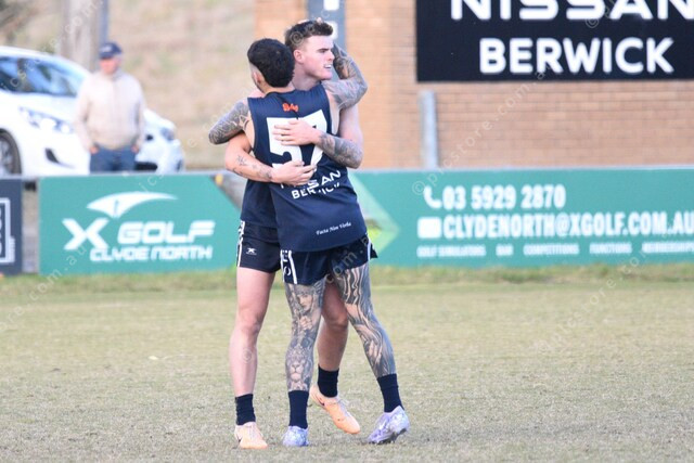 Sam Woodward (10 Berwick) after his goal. Teammate James McLean (57). 479942_02