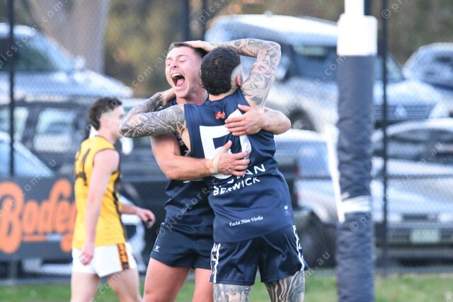 James McLean (57 Berwick, taller) after his goal in the last quarter. Teammate Ashton Williamson (4). 479942_23
