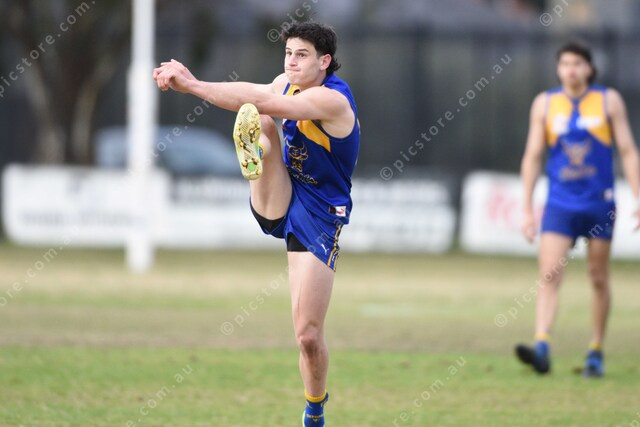 Matthew Nelson (61 NP) kicks a goal. 496429_02