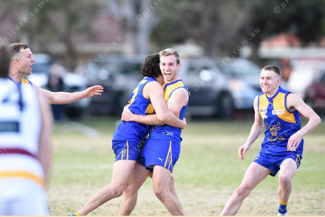 Last moments of the game, Joshua Stern (8 NP, blonde) kicks a goal and puts Noble Park back in front. 496429_27