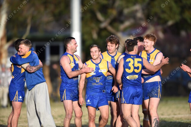 Noble Park walk off after their win. Winning goal kicker Joshua Stern (8, blonde, middle). 496429_38