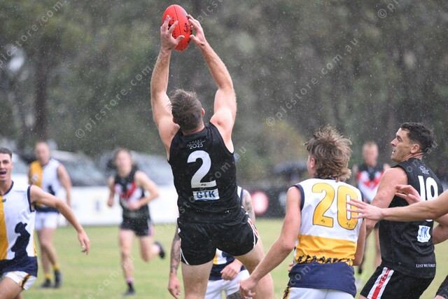 Tim Smith (2 South Belgrave) with the ball, right is Connor Mouat (20 Beac). 473715_12