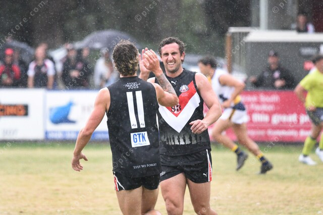 Blake Simondson (11 South Belgrave, left) after his goal in the rain. Teammate right is ?? 473715_14