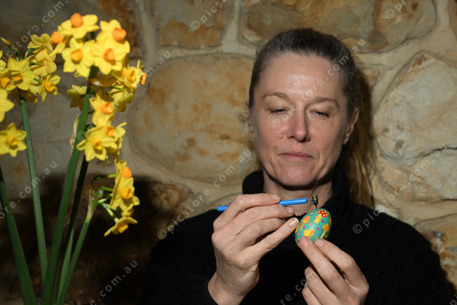 Kathy Holowko is running a Ukrainian egg decorating workshop. (Damjan Janevski). 497283_06