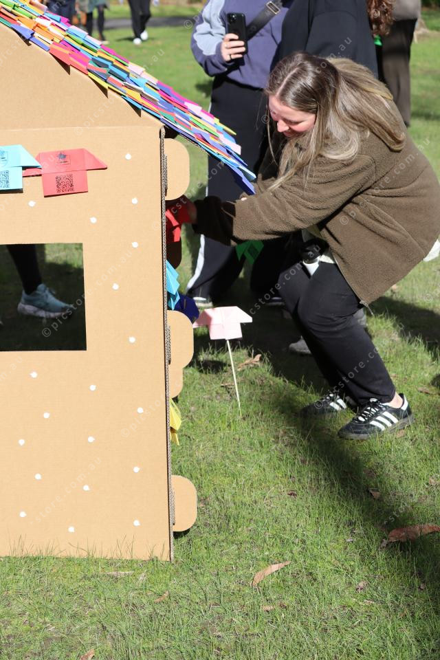 Homeward Bound Walk participants placing their origami house on the display to represent the need for 60,000 social and community homes. (494773)