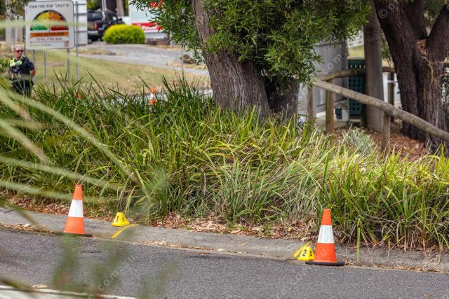 After the roundabout this is where the bus left the road, between the cones.