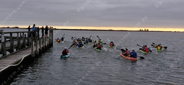 Competitors taking off at 6am for the paddle leg at Mundoo Channel.