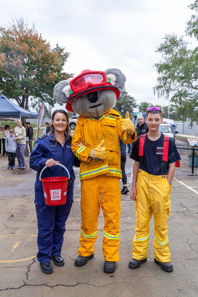 L-R Bianca Walker, Captain Koala and Lucas Farr from Emerald CFA.