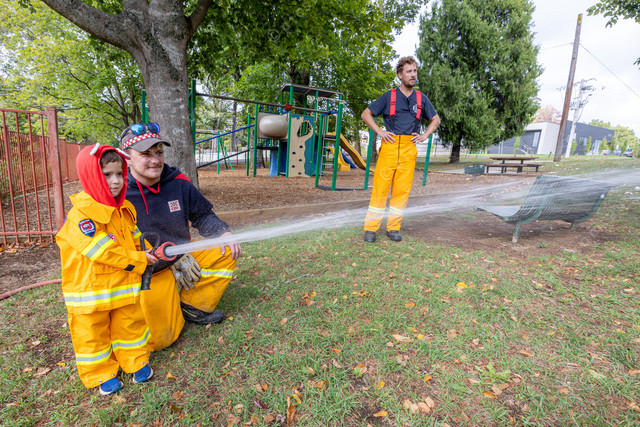 Arlo from Avonsleigh tries the firefighter hose.