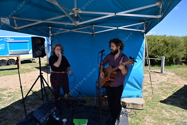 Jessi and Luke entertain Coorong Cafe patrons. (Mark Liebich: 513531_09)