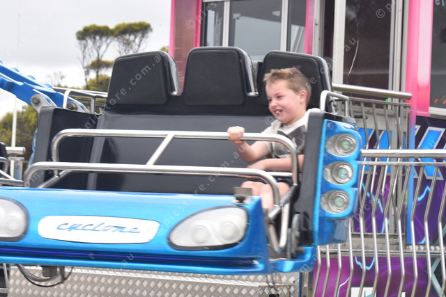 Charlie Coombes gets a thrill from one of the rides. (516122)