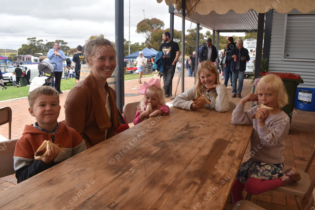 Elias, Ebony, Ivana, Johanna and Helena Doering from Dutton sit down for lunch. (516122)