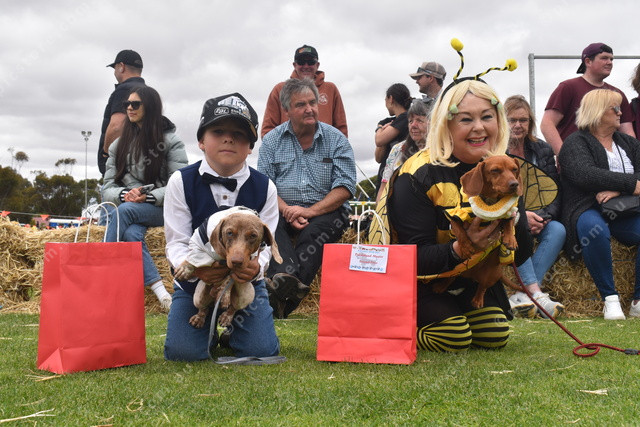 Lucas Mumford and Schnitzel from Robertstown won Best Dressed at the Dachshund Muster, with Jody Thomas and Polly from Riverton runners up. (516122)
