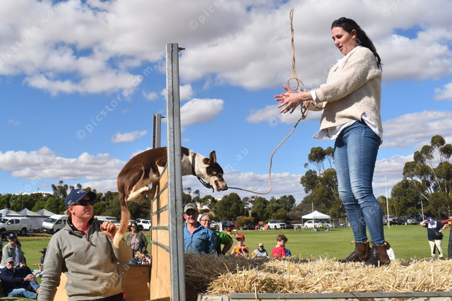 Damien and Charlotte Jenke with Sadie, who would take out the Open class in the Dog Jumping. (516122)
