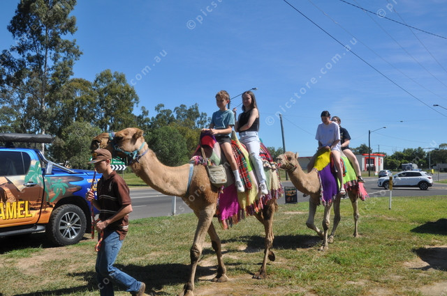 Sebastian Curtis, Stefanie Silvester, Latisha Eddie and Skye Hansen-Ferry experiencing a slice of the outback with a camel ride.