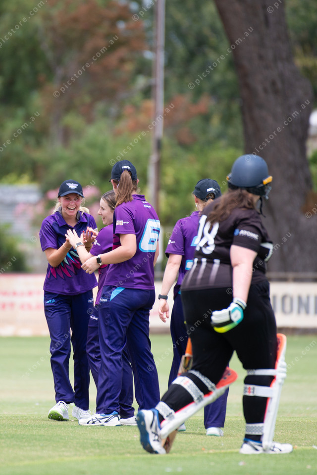 Skye Warburton and Holly Paech celebrate one of Paech’s four wickets. (Dani Brown: 454650_08)