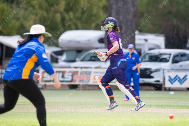 Captain Rebecca Hull pushes for a single after getting bat to ball. (Dani Brown: 458688_04)