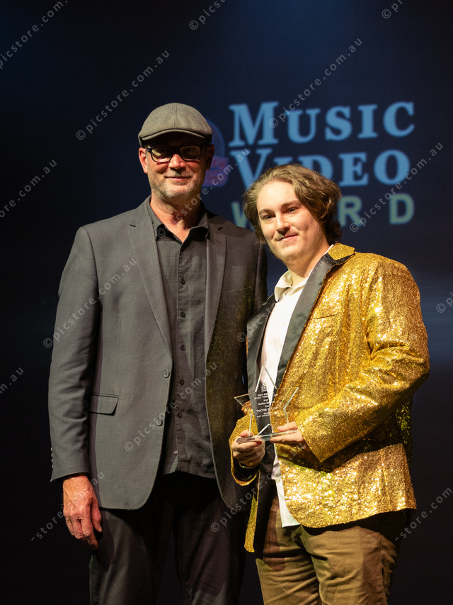 Rhys Staunton-Carlile accepted the Port Lincoln City Band Music Video FAME Award on behalf of Nathan Ashdown for ‘Doctor Doctor’ from City Band conductor Bill Kannussaar. (516978_14)