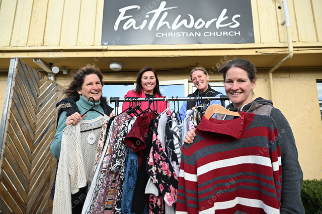 Faithworks Christian Church’s fashion swap event. Pic of Lexi Lethborg, Sheridan Earl, Shelley Farrugia and Kerri Matthews. Photo by Damjan Janevski. 484523_01