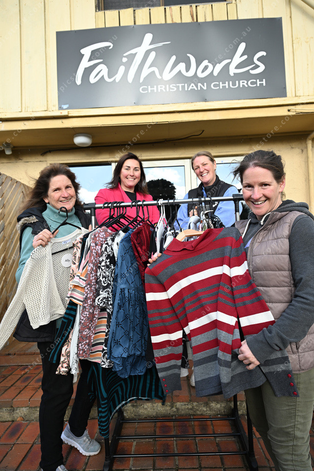 Faithworks Christian Church’s fashion swap event. Pic of Lexi Lethborg, Sheridan Earl, Shelley Farrugia and Kerri Matthews. Photo by Damjan Janevski. 484523_02