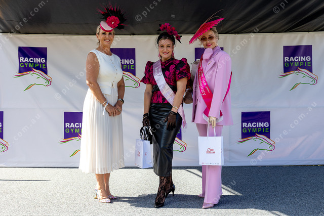 Michele Perrett with Contemporary Racewear runner up Helen Strong and winner, Sharny Hopkins.