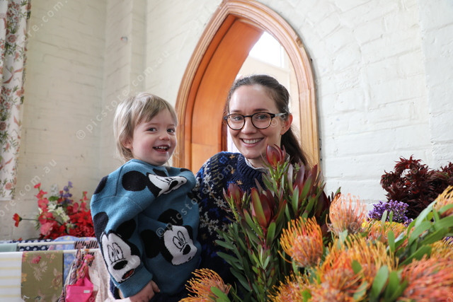 Having fun at the flower stall, George King, 2 with his mum, Maddy Struck, from Hamilton.