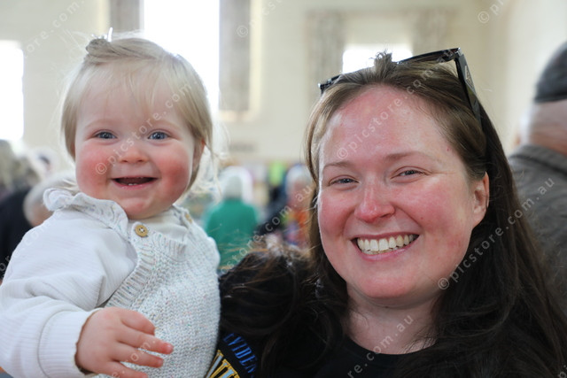Little Neave Bryne, 15 months, was all smiles for the camera, with her mum, Sally Bryne, both Hamilton.