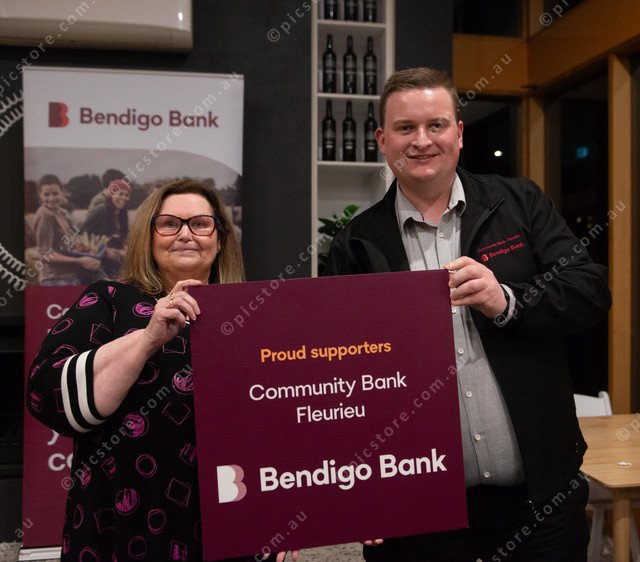 Gidge Hunter of the McLaren Vale Lions and Community Bank’s Jordan Sampson. (Jack Church 493795_05)