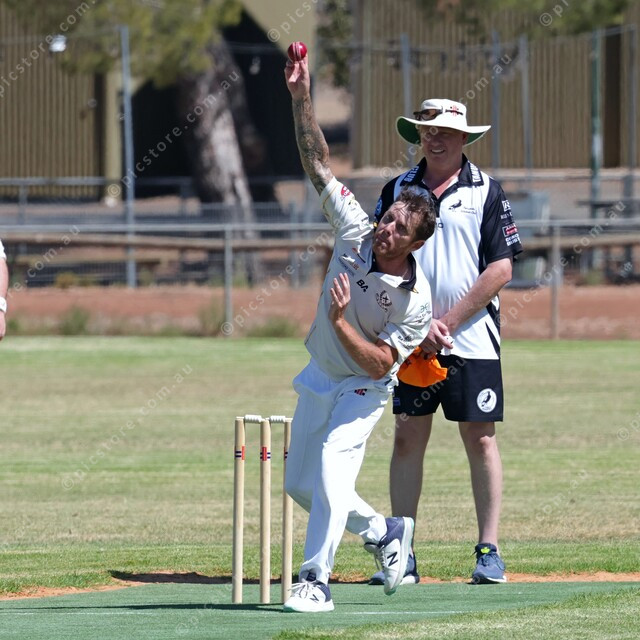Gawler Central’s Simon Barlett keeps the seam upright. (Michael Slattery: 458581_02)