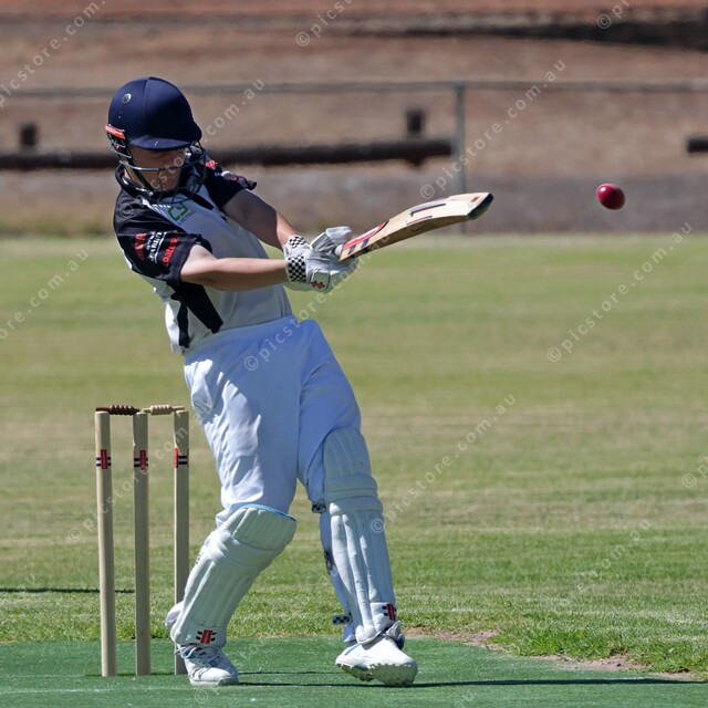 Tanunda’s Jake McCallum connects on a solid pull shot over mid-on. (Michael Slattery: 458581_05)