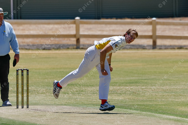 Sandy Creekâs Isaac Eckermann bowling at Curdnatta Park (Mark Willoughby: 458581_07)