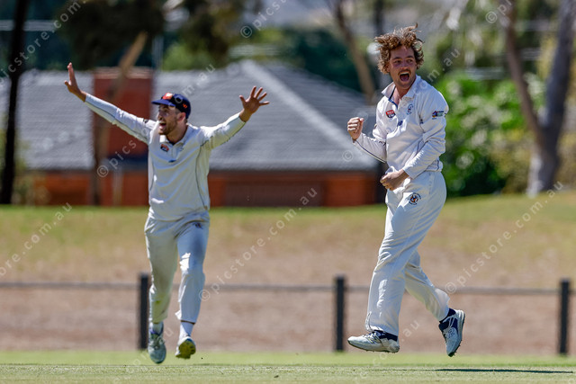 Walter Kinlock makes a big appeal for LBW and gets the decision. (458641_02)
