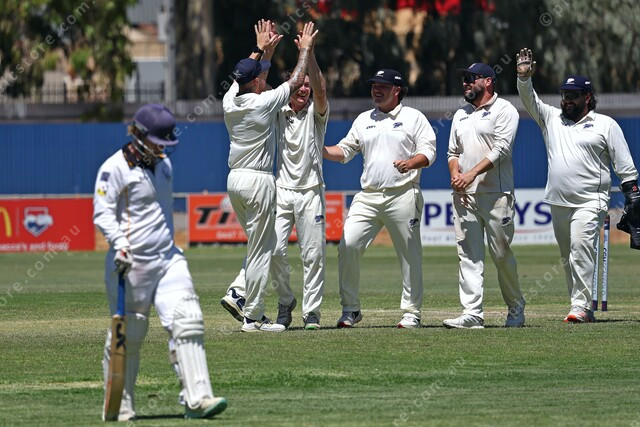 Nathan Foord trudges back to the pavilion as Willaston celebrate his wicket. (534840_08)