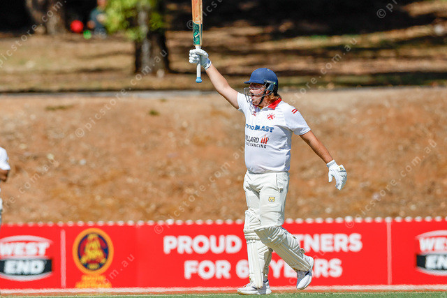 Thomas Burton salutes the Barossa and Light bench after completing the championship-winning run chase. (534855_05)