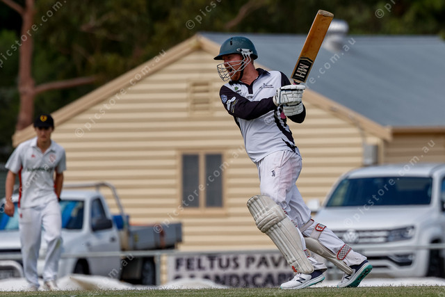 Tanunda’s Jonathan Justin bashes a shot back down the ground. (459791_01)