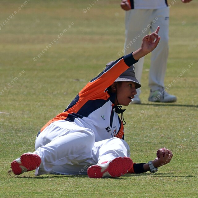 Northern Districts’ Gurshaan Singh Sidhu raises his finger after securing a lunging catch. (460042_03)