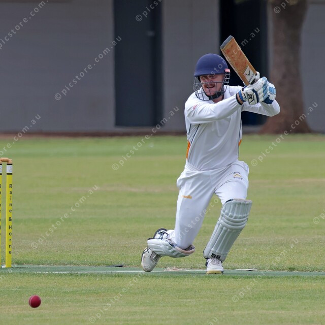 Dylan Childs watches his cover drive run away to the boundary. (460083_07)