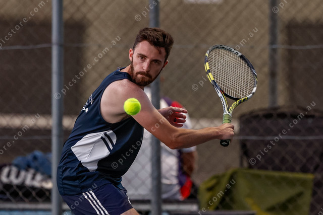 Daniel Shadbolt winds up a big one-hand backhand from the baseline. (460272_02)