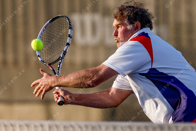 Paul Butterworth keeps his eye on the ball for a volley at the net. (460272_04)