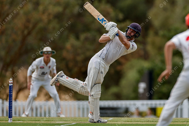 Harvey Box gets aggressive as he goes around the corner down to fine-leg. (536316_09)