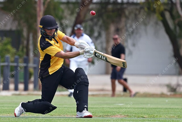 Angle Vale’s Joshua Pfeiffer pops up a top-edge. (536343_01)