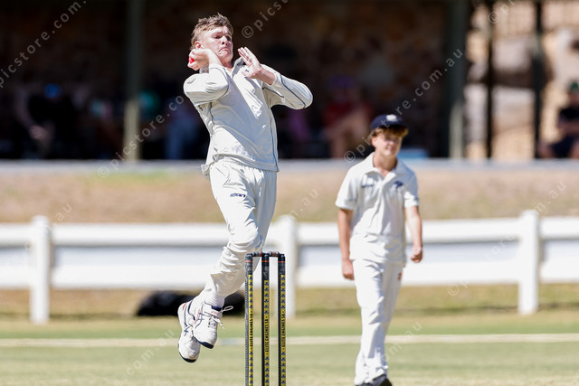 Archie Matthews steaming in with pace for Willaston. (461440_08)