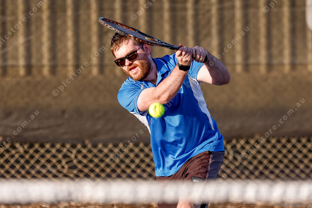 Reece Maudslay drives a two-hand shot from the baseline at Essex Park. (Mark Willoughby: 461713_01)