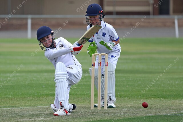 Rowan Earl plays a sweep down on one knee. (531926_03)