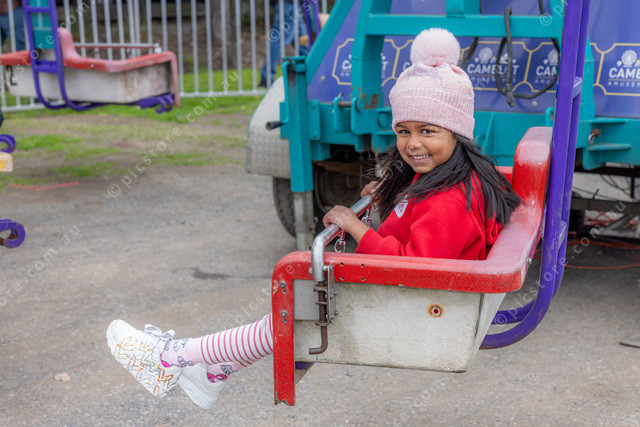 4yo Parina from Clyde on one of the rides at Frost Bites Food Festival at The Old Cheese Factory Berwick.