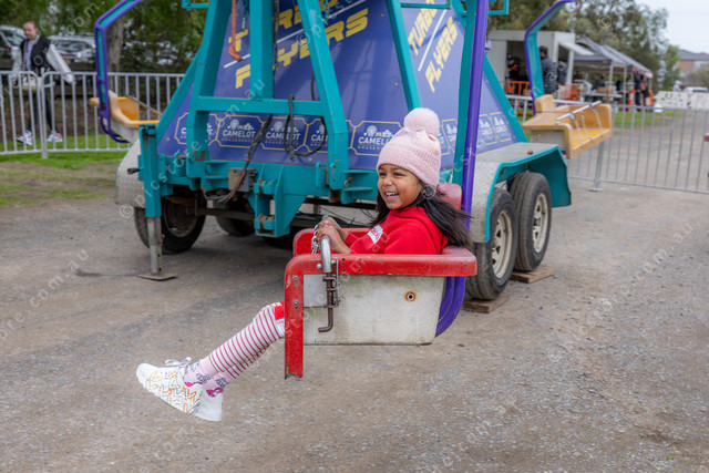 4yo Parina from Clyde on one of the rides at Frost Bites Food Festival at The Old Cheese Factory Berwick.