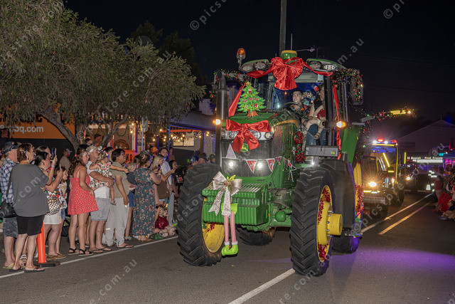 Tractors paraded along Edwards street decorated in Christmas colours.