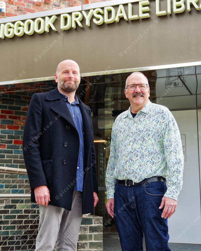 Aaron Elsey (Information Services librarian) and Bill Lussier (Chair, North Bellarine Film Festival) (Ivan Kemp) 490988_02
