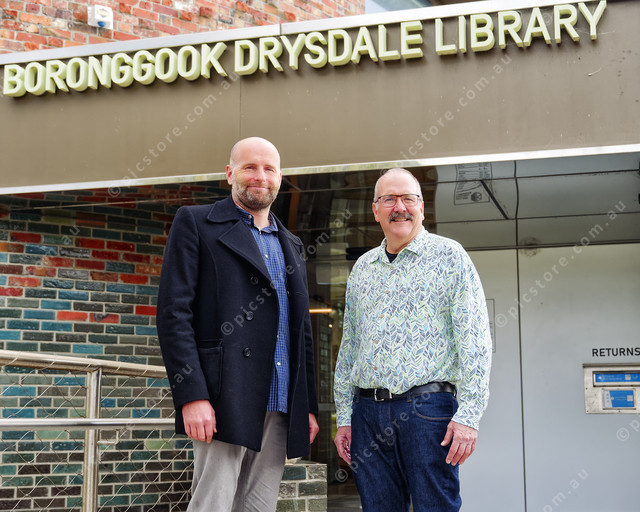 Aaron Elsey (Information Services librarian) and Bill Lussier (Chair, North Bellarine Film Festival) (Ivan Kemp) 490988_03