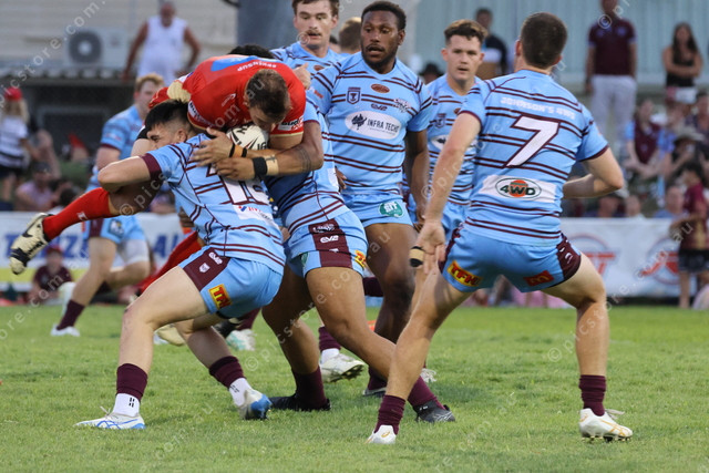 A massive tackle by the Capras on fellow Central Queensland star Cooper Marshall.